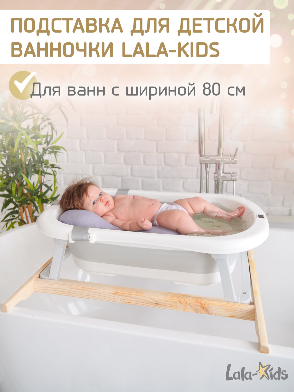 Подставка для ванночки для купания новорожденных LaLa-Kids натуральное дерево 80 см интересное: