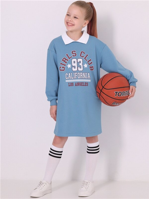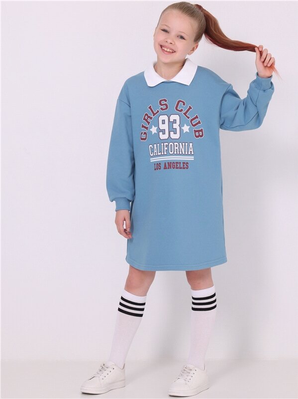 Платье - толстовка для девочки футер Апрель 1ДПД4520335/1358/2631/*/3409/*/*/* голубой 76-146