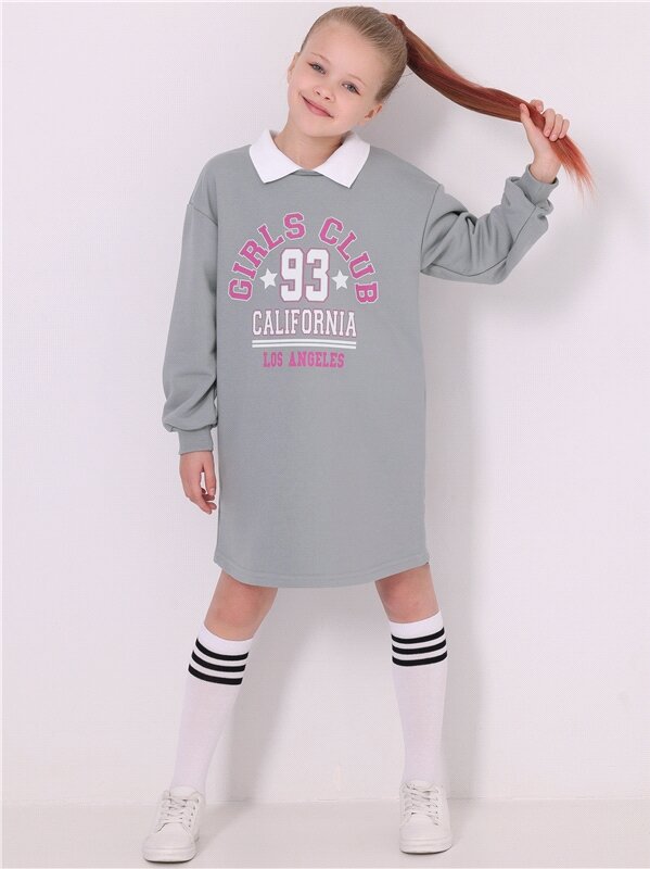 Платье для девочки в стиле преппи теплое футер Апрель 1ДПД4520335/ серый 128-64