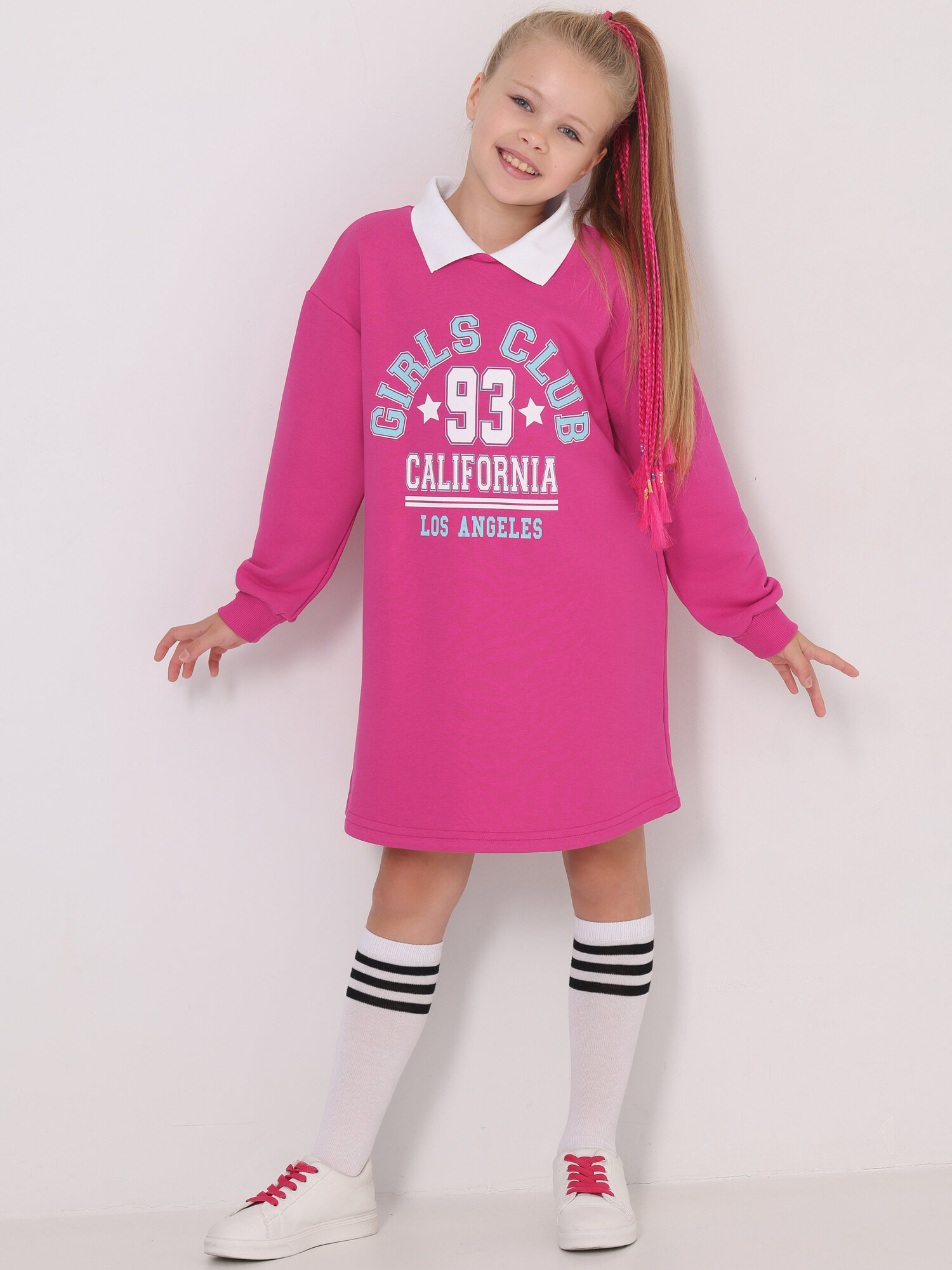 Купить Платье для девочки в стиле преппи теплое футер Апрель 1ДПД4520335/1358/2527/*/3409/*/*/* розовый 76-146