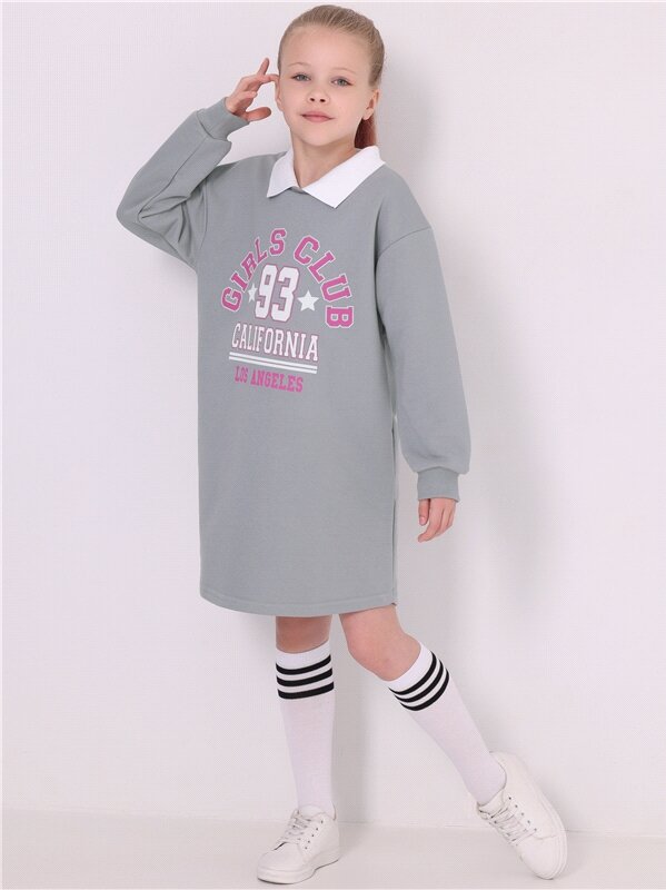 Купить Платье для девочки в стиле преппи теплое футер Апрель 1ДПД4520335/ серый 146-76