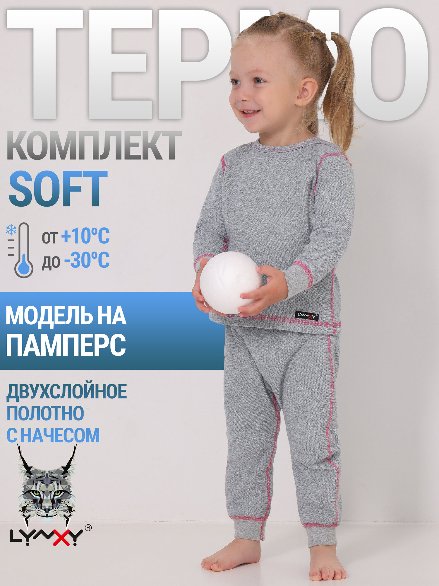 Термобелье для девочки зимнее с начесом Soft Lynxy/2ДНК3763020/1346/446/*/*/*/*/*/серый/52-98