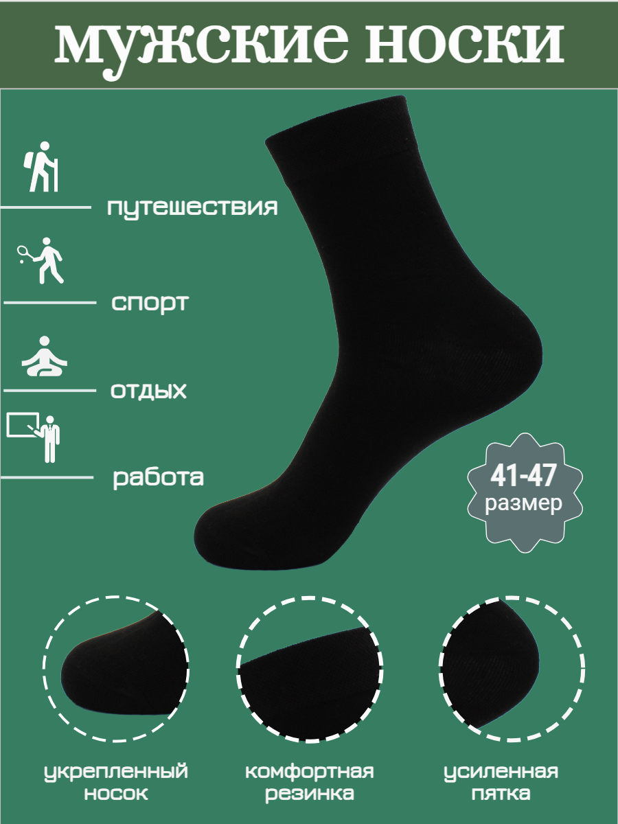 Носки, комплект, 6 пар в упаковке, размер 41-47, черный