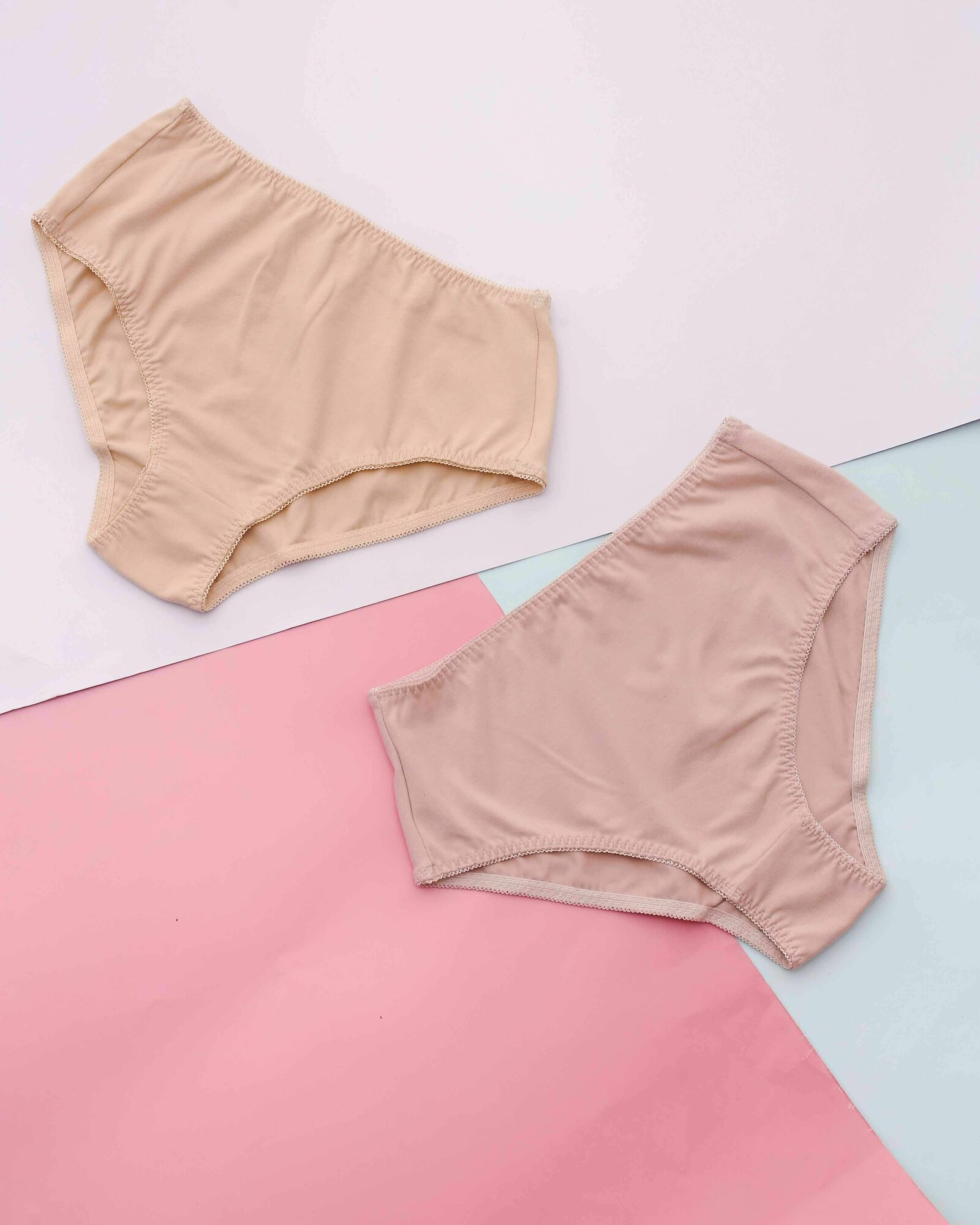 Женский комплект трусиков с высокой посадкой, хлопковые слипы, большие размеры 2 шт "Бежевый/Пудровый" S