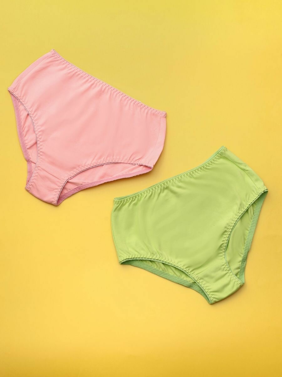 Купить Женский комплект трусиков с высокой посадкой, хлопковые слипы, большие размеры 2 шт "Салатовый/Розовый" XS