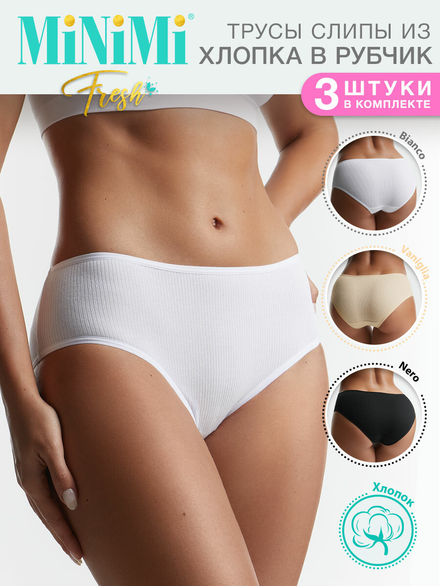 Женские трусы MFR222 Ribana Slip Midi в рубчик, набор 3 пары, цвет Bianco размер 44 (S)