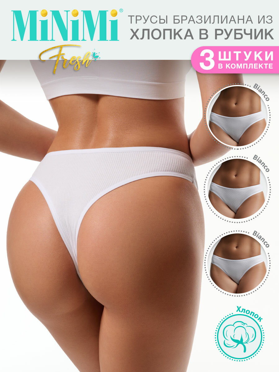 СохранитьЖенские трусы - бразилиана MiNiMi MFR261 Ribana, набор 3 пары, в рубчик с низкой линией талии и узкой боковиной, цвет Bianco, размер 46 интересное: