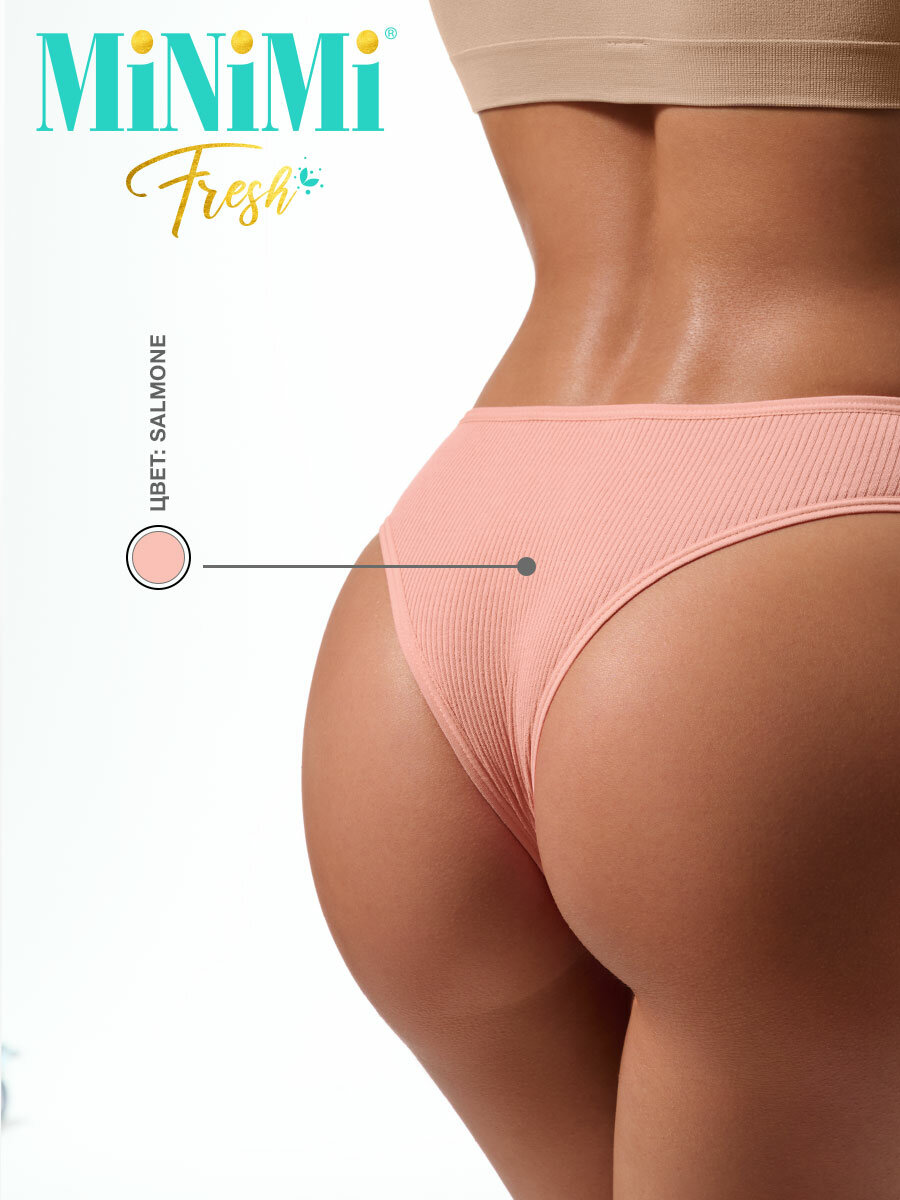 Женские трусы - бразилиана MiNiMi MFR261 Ribana, набор 3 пары, в рубчик с низкой линией талии и узкой боковиной, цвет мультиколор 1, размер 46