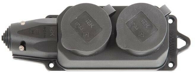 Розетка (колодка) 2-м Омега РБ32-1-0м IP44 с защ. крышкой каучук IEK PKR62-016-2-K02 (1 шт.)