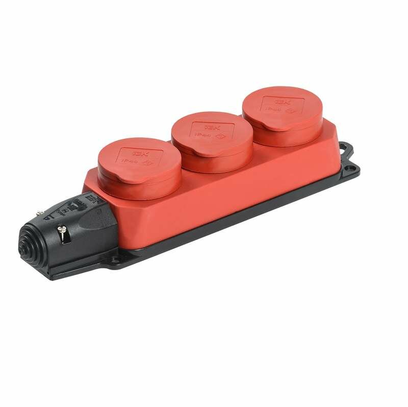 IEK Колодка 3-мест 16А оранжевый каучук заземление IP44 IEK