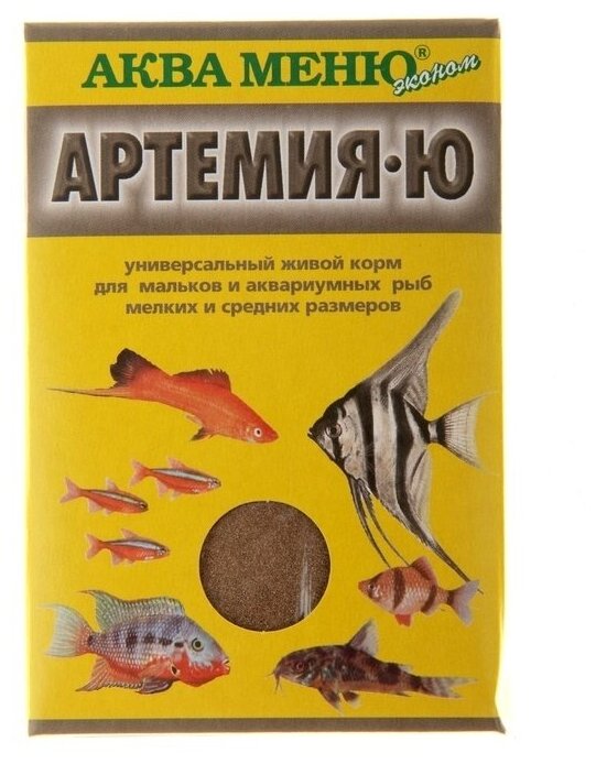 корм для рыб Аква Меню "Артемия-Ю" Универсальный живой корм 2 в 1 для мальков и аквариумных рыб мелких и средних размеров, 20гр, 20 гр (8 штук)