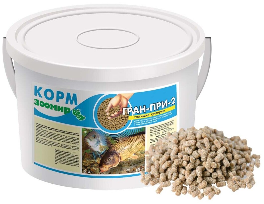 Зоомир Корм для рыб гран-при 2, тонущие гранулы, 6 кг ведро 10 л