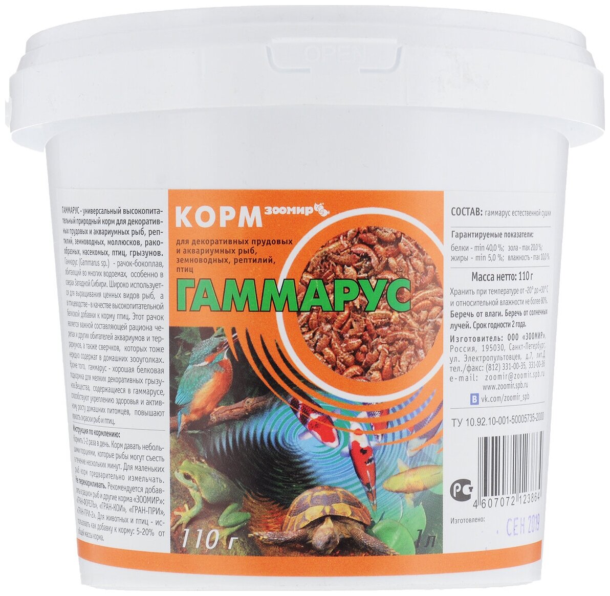 Купить Зоомир Гаммарус для рыб рептилий земноводных птиц пластиковый контейнер 1л 172 0,11 кг 34518