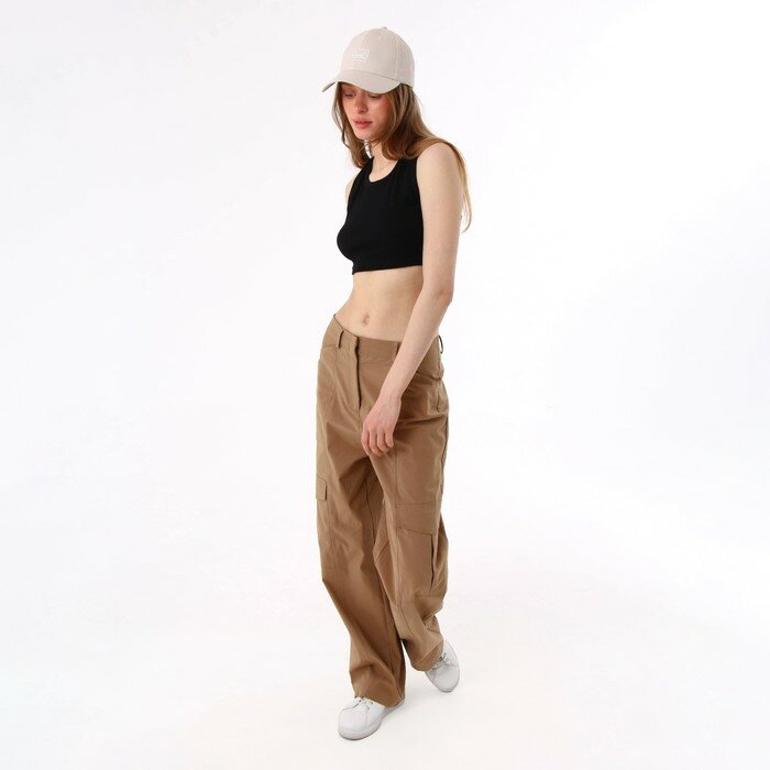 Брюки-карго Acoola Flip с карманами, бежевый, для девочек, 128