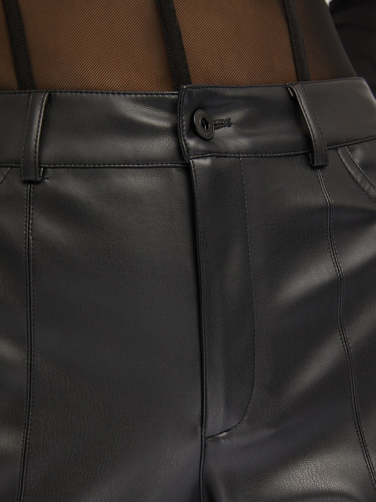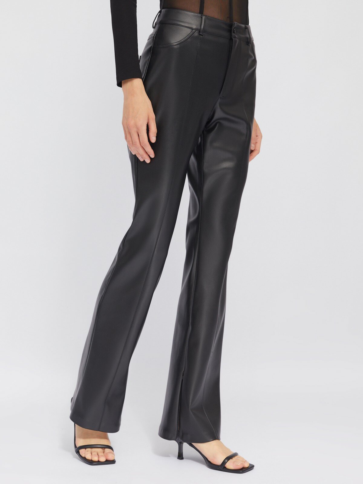 Брюки силуэта Bootcut из экокожи с молниями, цвет Черный, размер M 024117377073