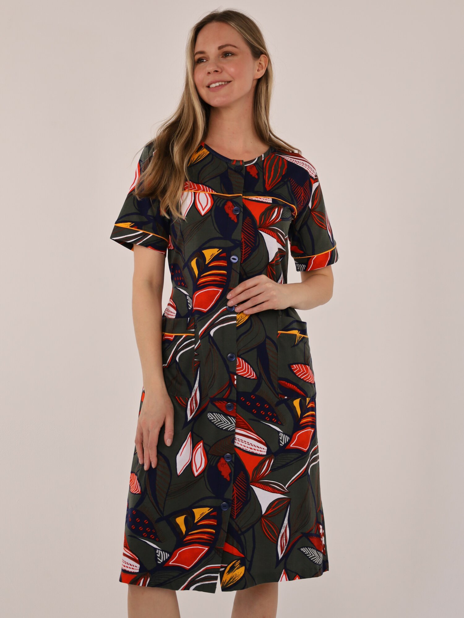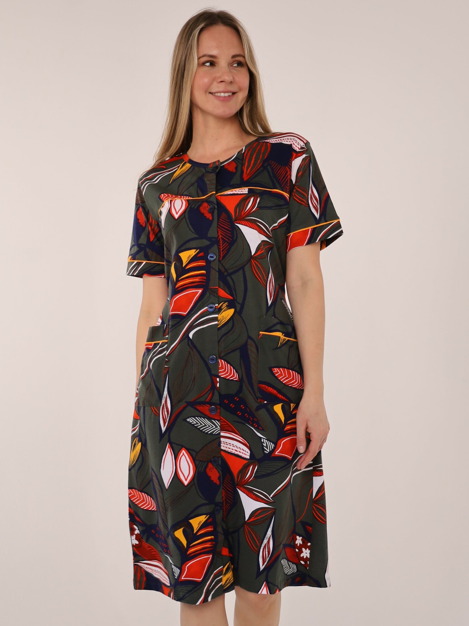 Халат женский на пуговицах, синий , размер 58