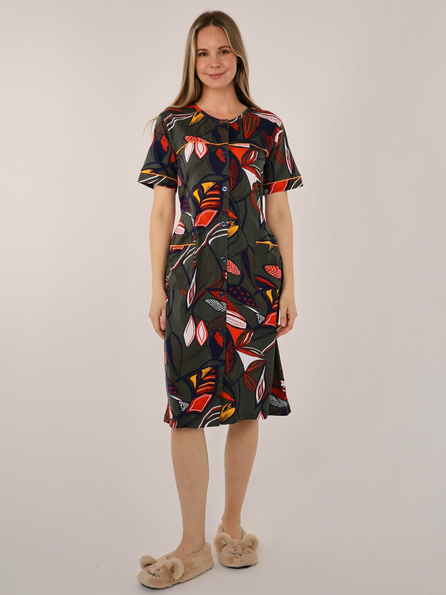 СохранитьХалат женский на пуговицах, зеленый, размер 60 интересное: