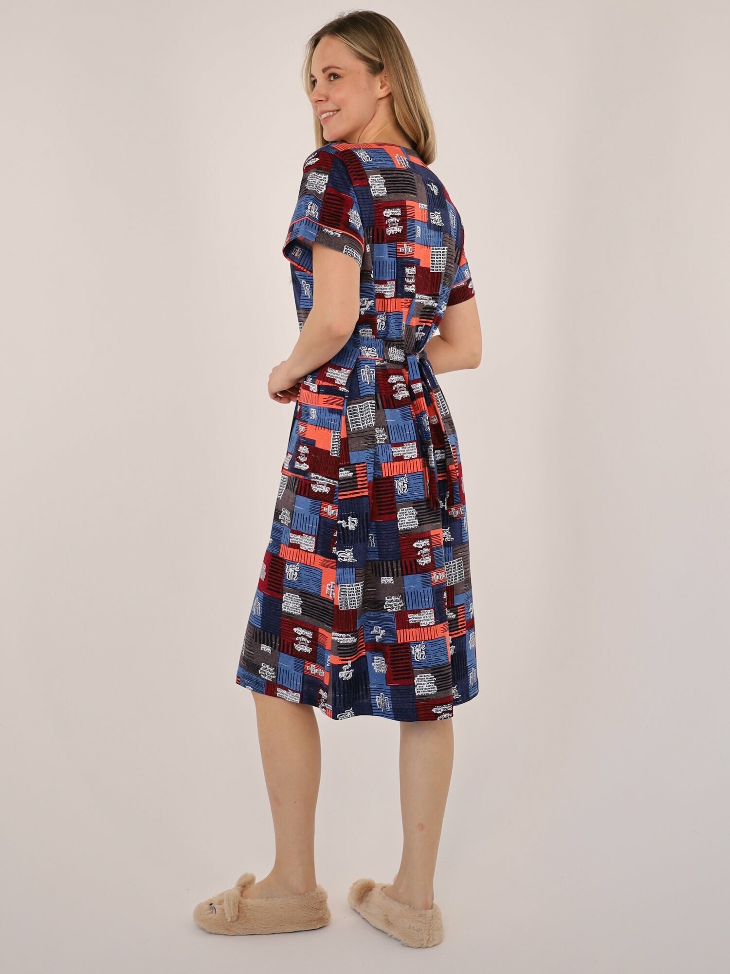 Халат женский на пуговицах, синий , размер 58