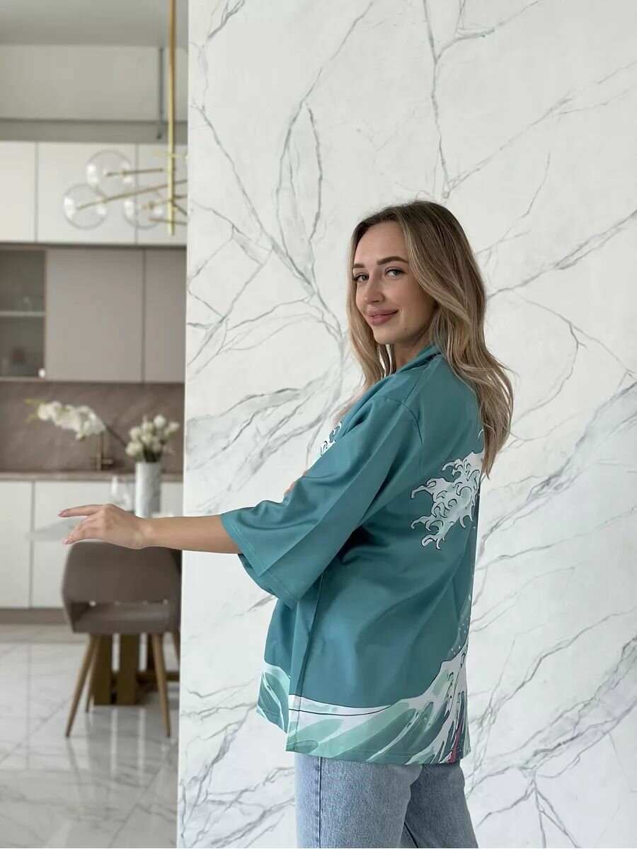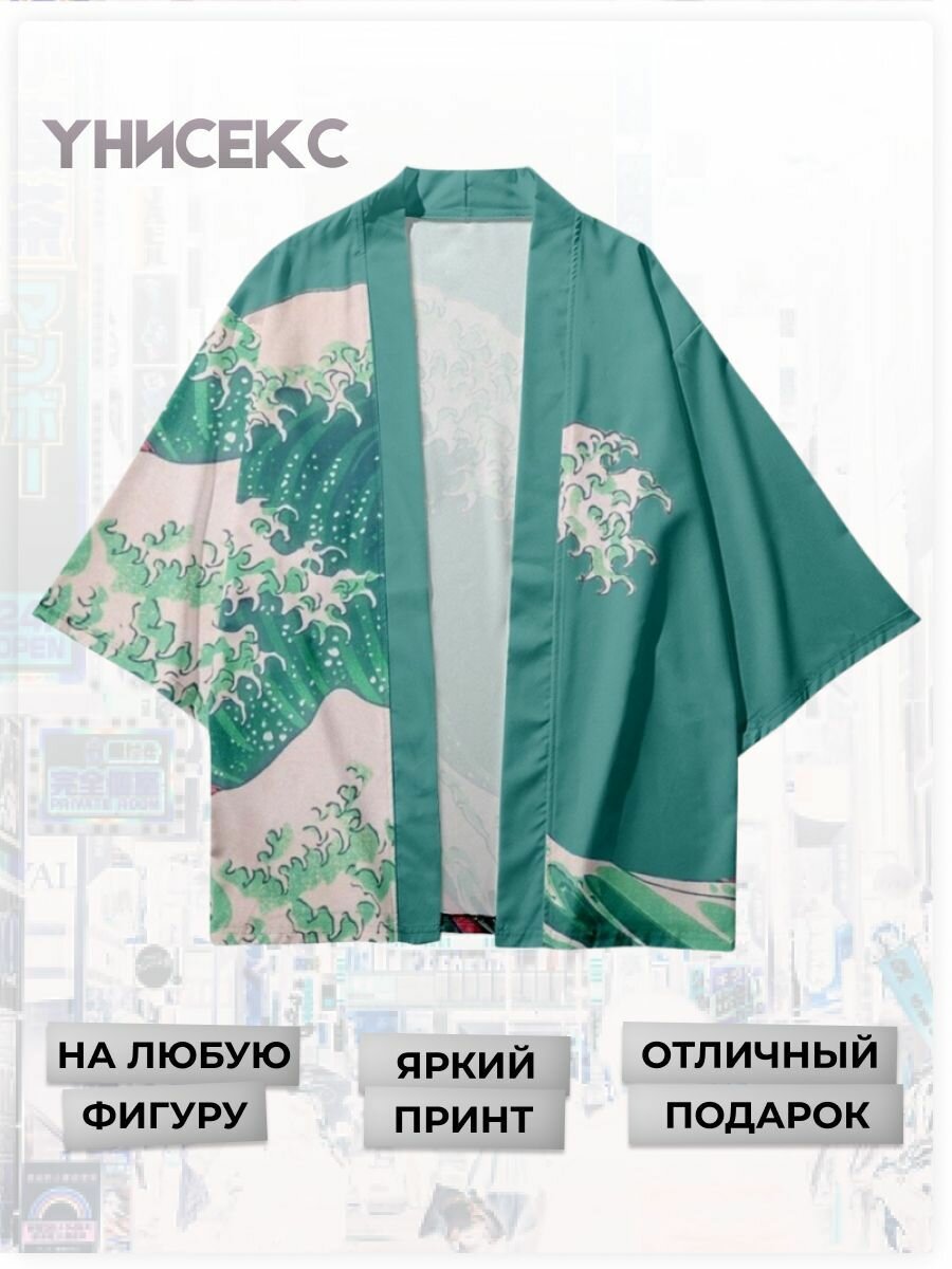 Купить Кимоно зеленое, рисунок Волна, размер XXXL (48-54)