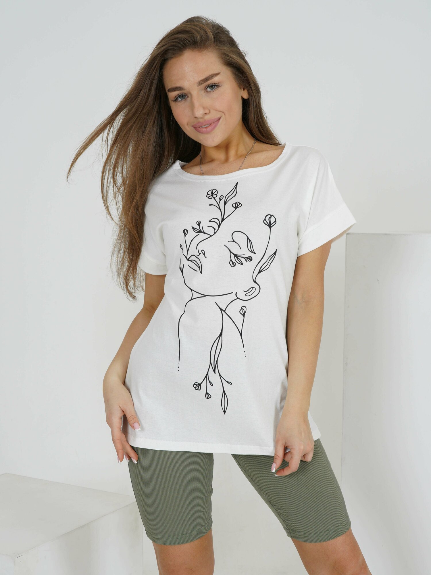 Lovetex.store / Футболка женская, хлопок 100% / молочный / размер 48
