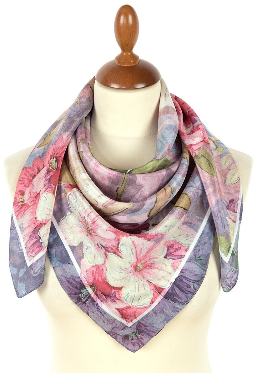 Платок на голову женский шелковый Павловопосадские платки 10437 вид 1, розовый, 89 х 89 см интересное: