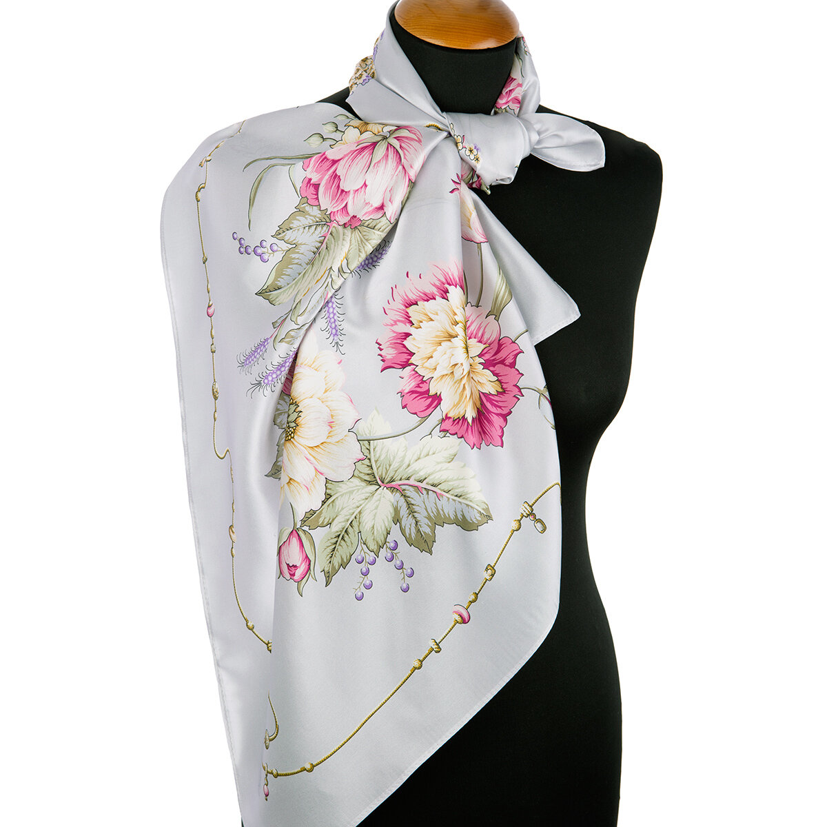 Платок на голову женский шелковый Павловопосадские платки 1455 Белый танец вид 1, белый 89х89 см интересное: