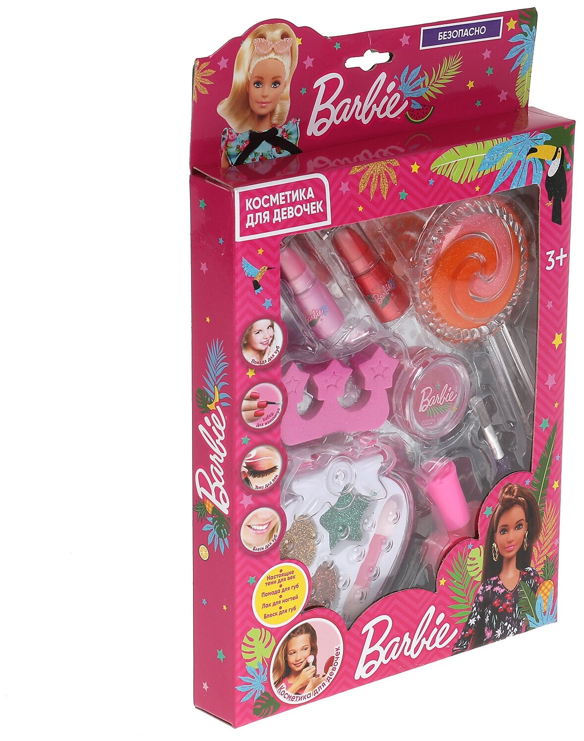 Купить Косметика для девочек Милая леди Барби тени, помада-блеск, лак, разделитель, блёстки для маникюра
