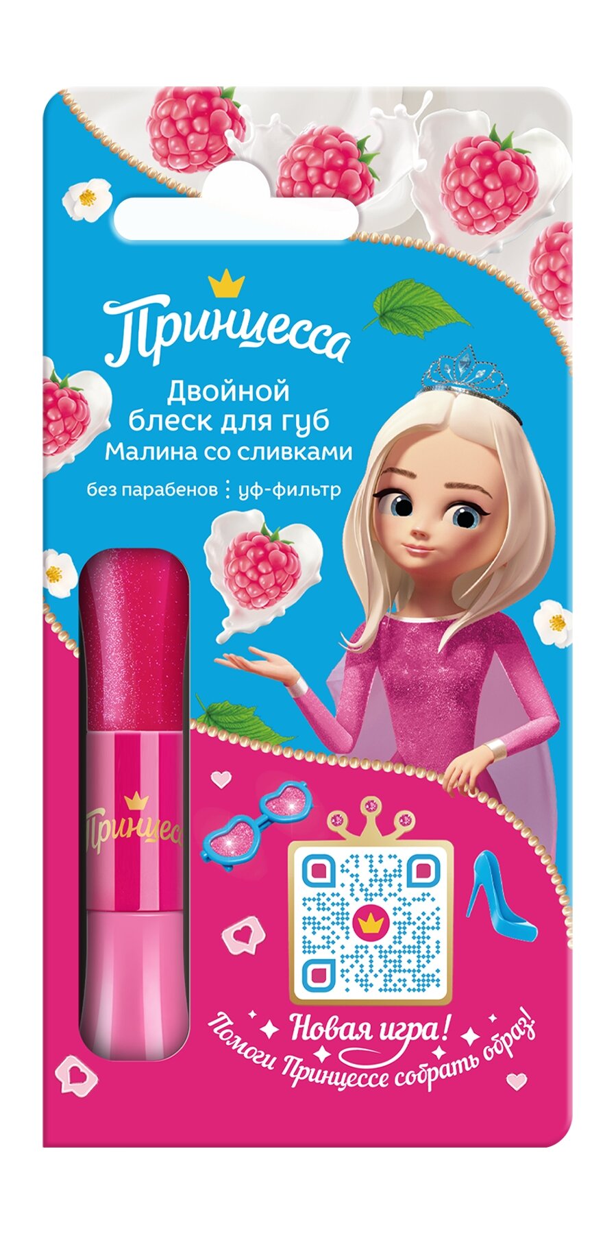 Принцесса Детский двойной блеск для губ Малина со сливками, 10 мл интересное: