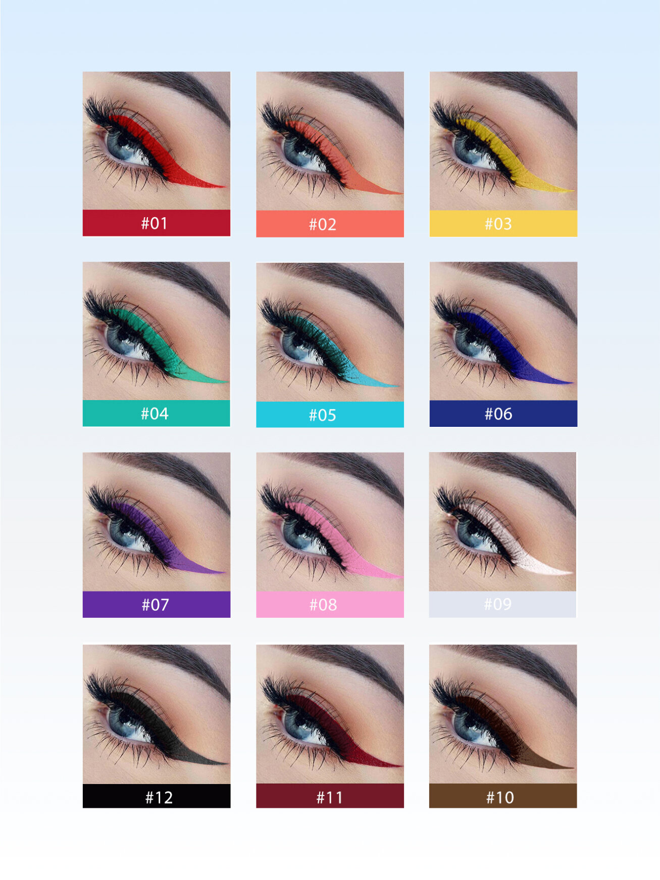 Набор цветных гелевых подводок маркеров для глаз Водостойка подводка для глаз 12 шт
