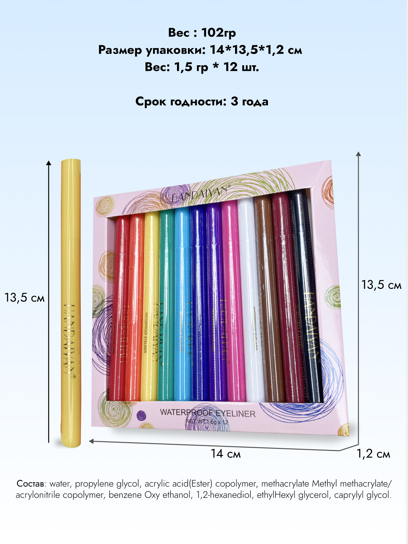 Ниже Вы можете прочитать отзывы на Набор цветных подводок фломастеров для глаз 12 шт., ознакомится с подробными характеристиками, посмотреть интересные обзоры и фотографии на Набор цветных подводок фломастеров для глаз 12 шт..