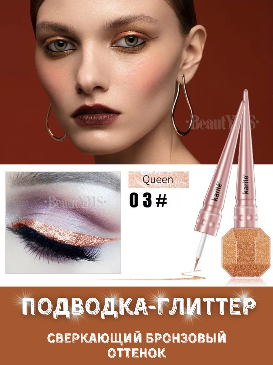 Подводка для глаз блестящая мерцающая цветная Стойкая глиттер для глаз и лица, 03 Золотисто-бронзовый интересное: