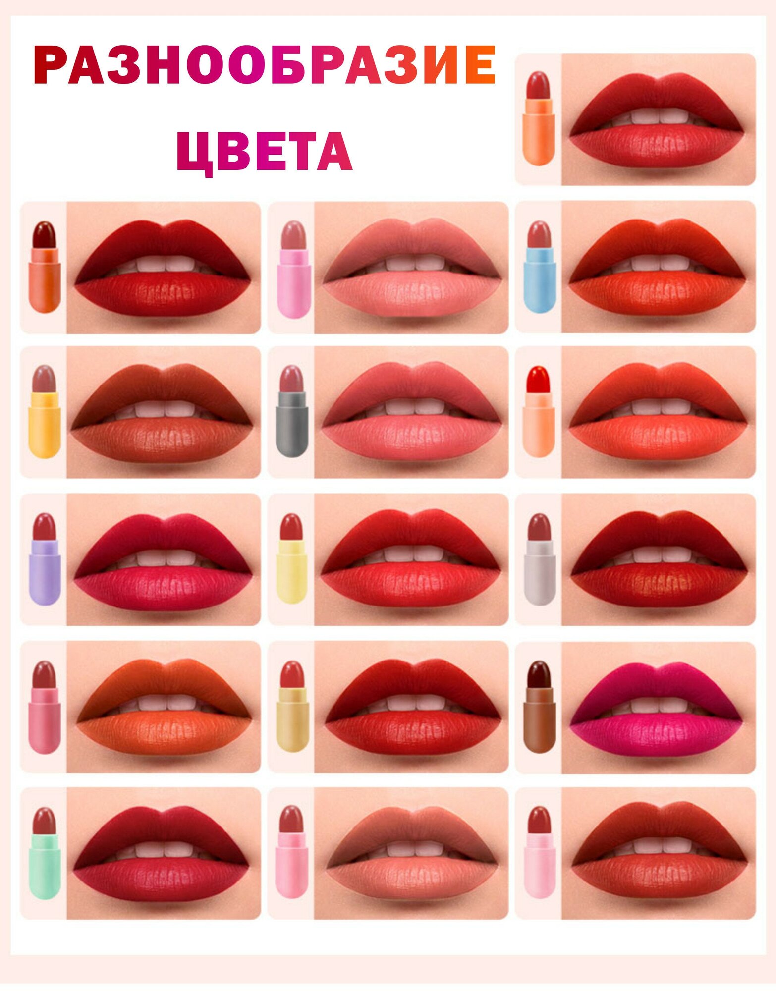 | Дополнительная информация | Все цвета мини помад можно смешивать между собой, что дает еще больше возможностей для экспериментов |