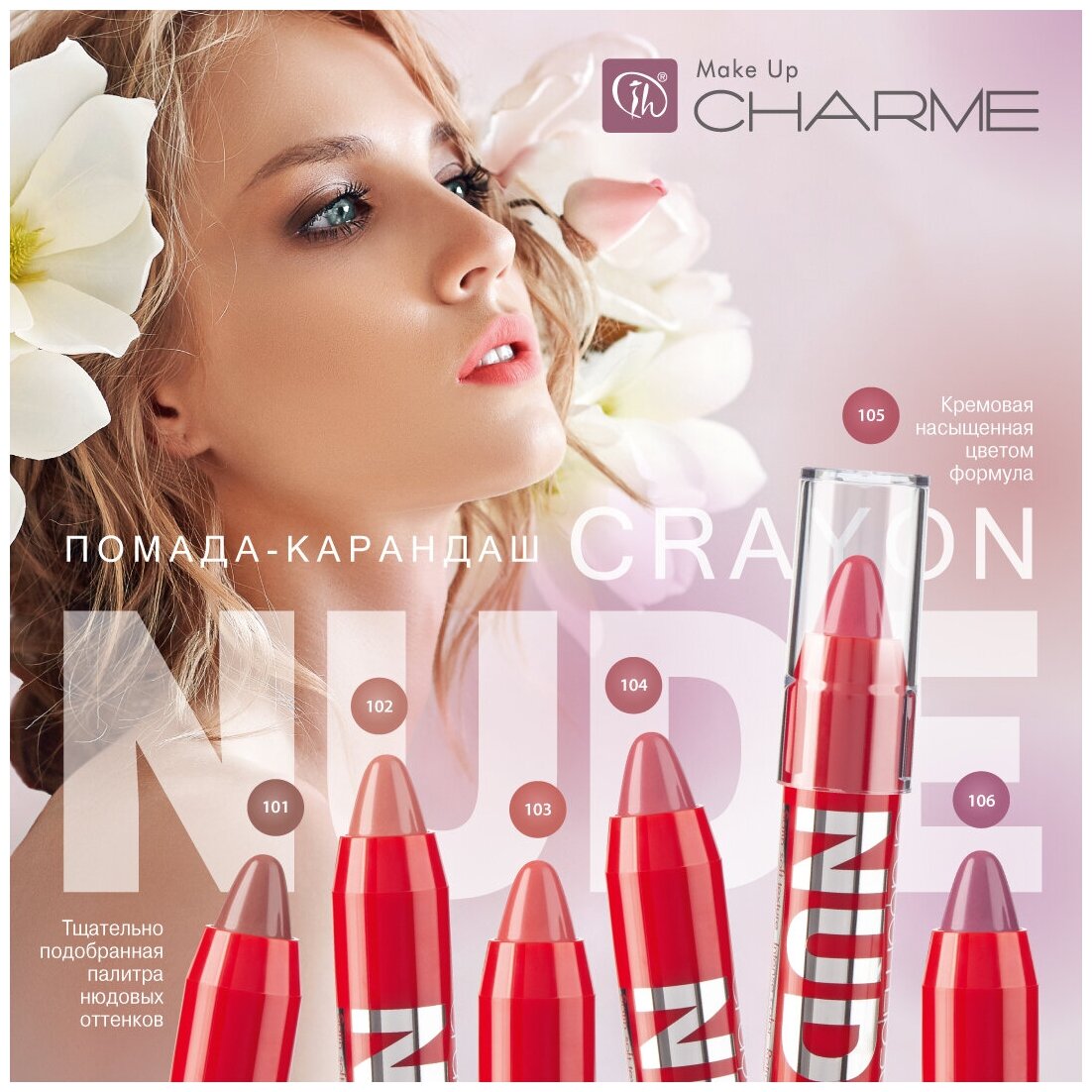 CHARME Помада-карандаш увлажняющая "Crayon NUDE" 104 Молодая роза интересное: