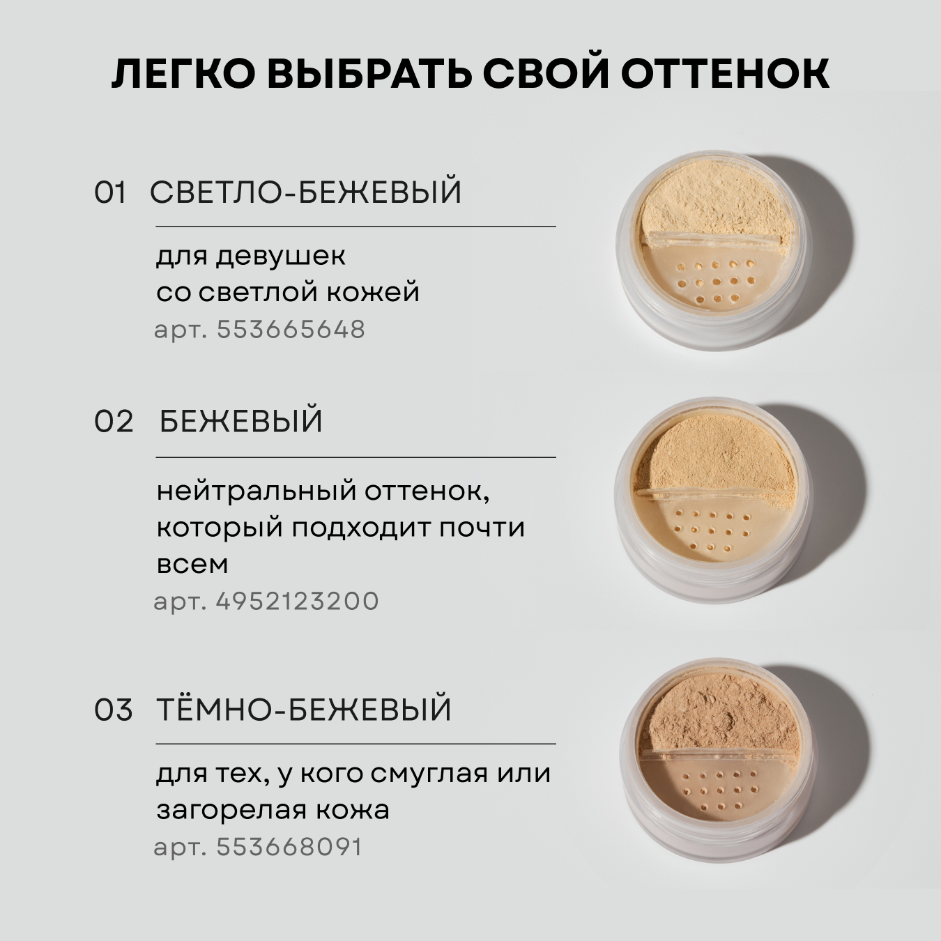Ниже Вы можете прочитать отзывы на Пудра для лица матирующая минеральная рассыпчатая, ознакомится с подробными характеристиками, посмотреть интересные обзоры и фотографии на Пудра для лица матирующая минеральная рассыпчатая.
