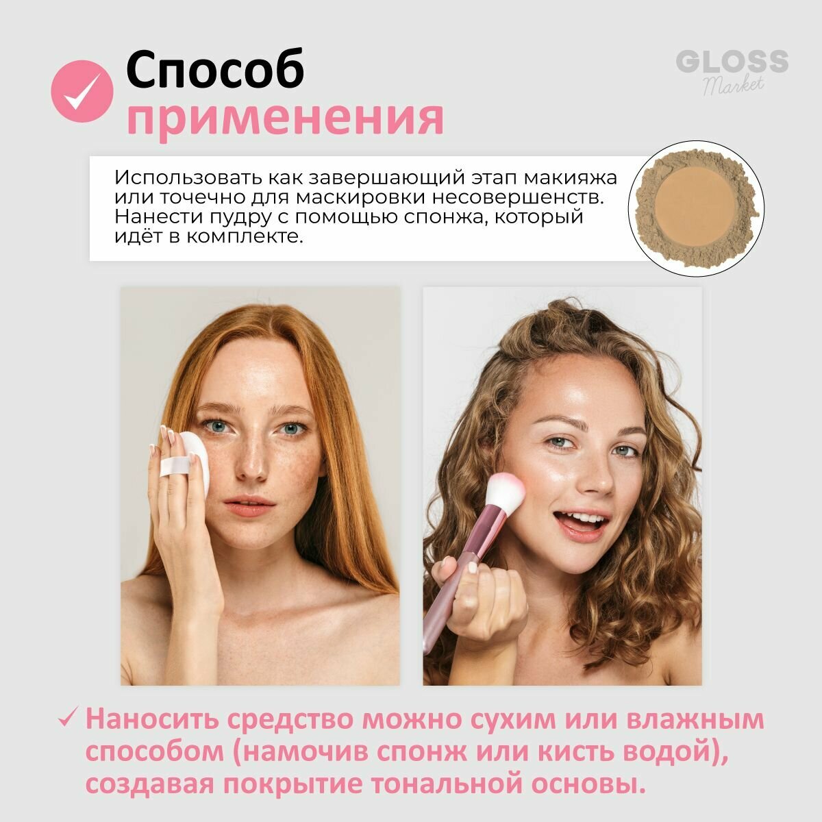 | Способ применения | Нанести пудру на завершающем этапе ухода за кожей. Равномерно распределить с помощью аппликатора. |