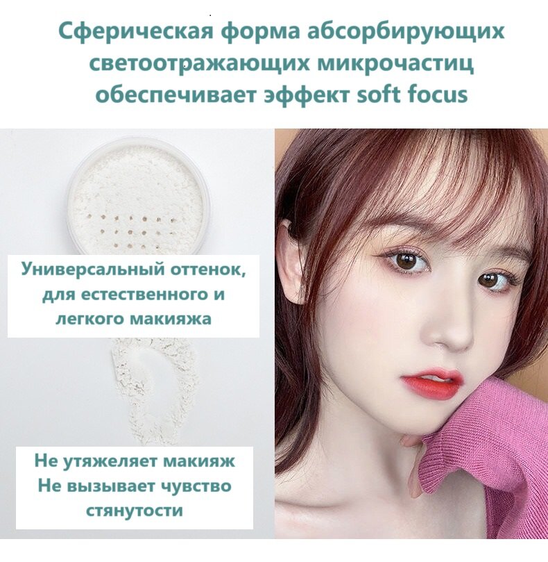 Пудра для лица. Матирующая , фиксирующая рассыпчатая . Прозрачная (белая пудра).Универсальный оттенок. Водостойкая . 10г интересное: