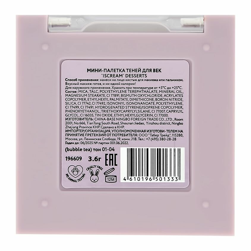 Мини-палетка теней для век ISCREAM DESSERTS (bubble tea) тон 01-04 интересное: