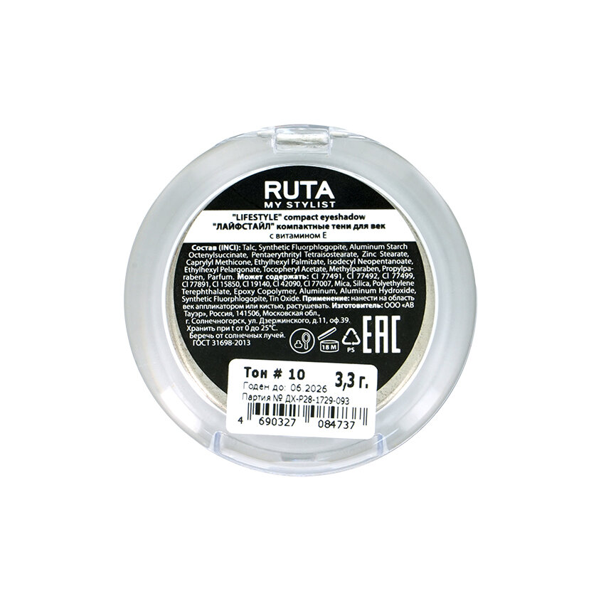 RUTA Тени для век компактные "LIFESTYLE", 03* шампань