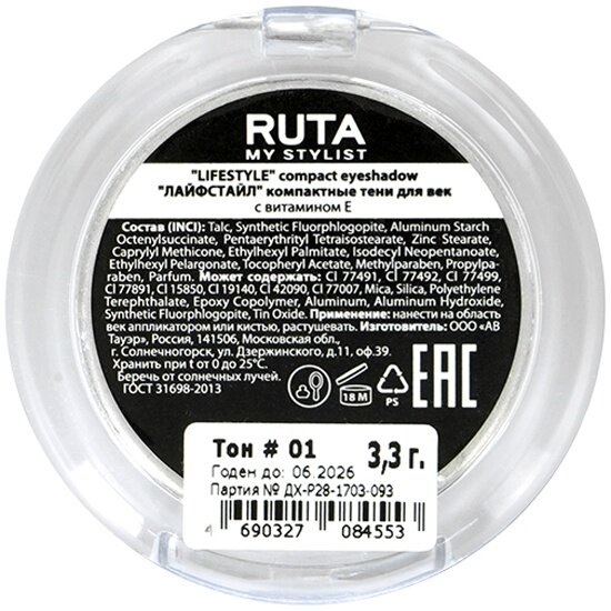 Купить RUTA Тени компактные "LIFESTYLE", 01* белоснежный блик