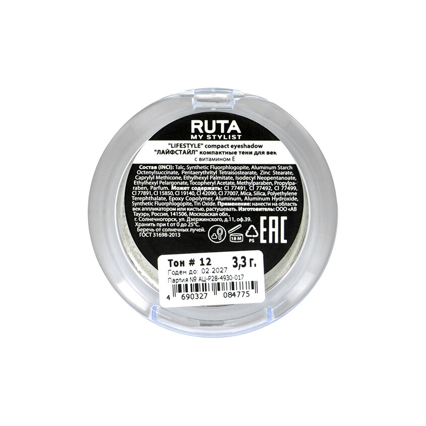 RUTA Тени для век компактные "LIFESTYLE", 01* белоснежный блик