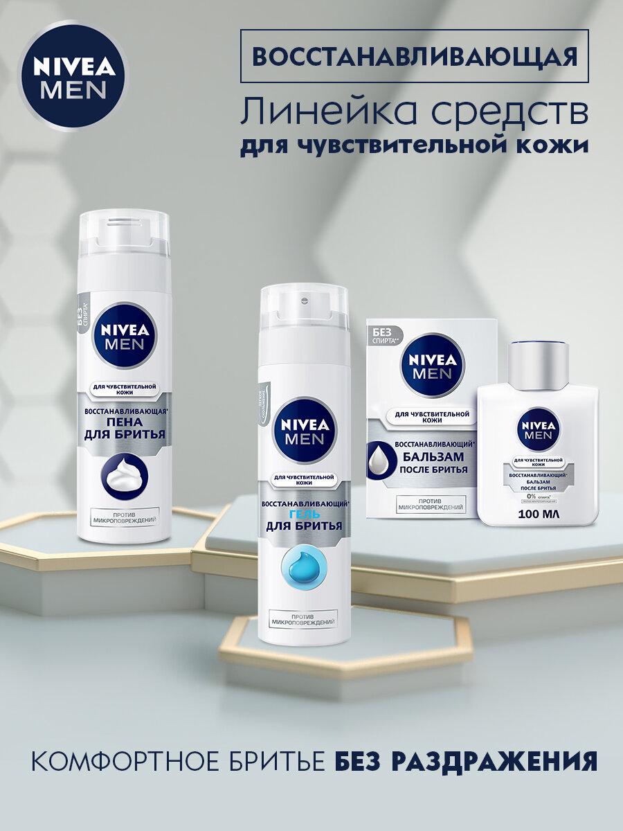 NIVEA Пена для бритья для чувствительной кожи лица восстанавливающая, 200 мл