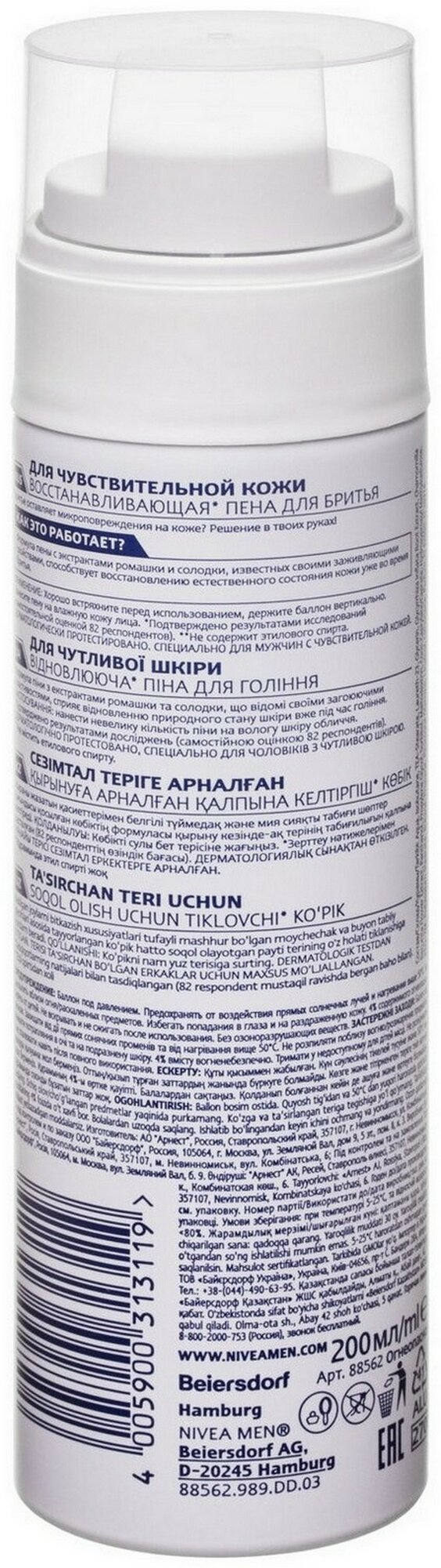Nivea Men Пена для бритья для чувствительной кожи Восстанавливающая 200 мл 1 шт
