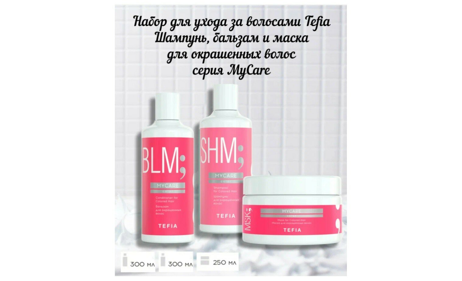 Набор для окрашенных волос MYCARE Color Tefia (шампунь 300 мл + бальзам 300 мл + маска 250 мл) интересное: