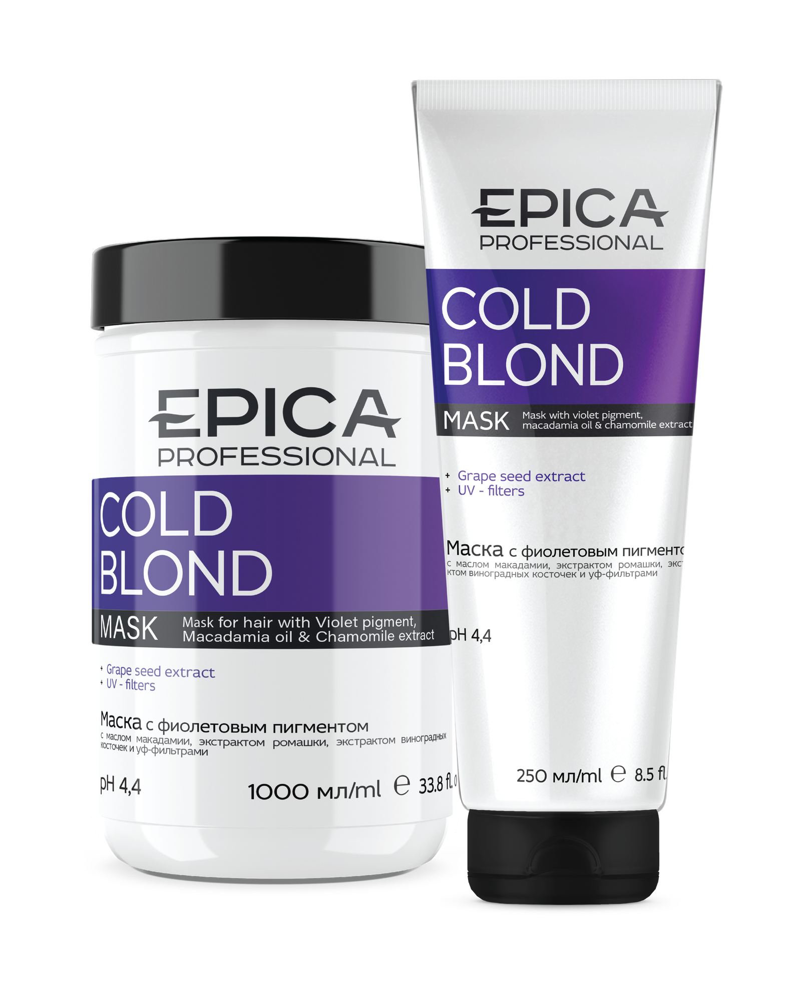 | Дополнительная информация | Нейтрализация желтизны, особенно в домашних условиях, поможет профессиональная косметика Эпика. Фиолетовая маска для волос Cold Blond нейтрализует нежелательный желтый пигмент на осветленные пряди и седые волосы. |