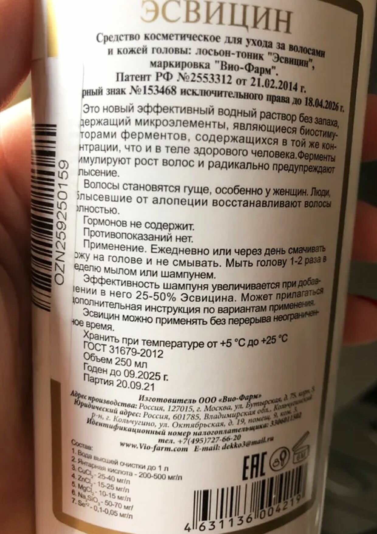 "Эсвицин" лосьон-тоник 2 в 1 для роста волос, укрепления и против выпадения 2 х 250мл. интересное: