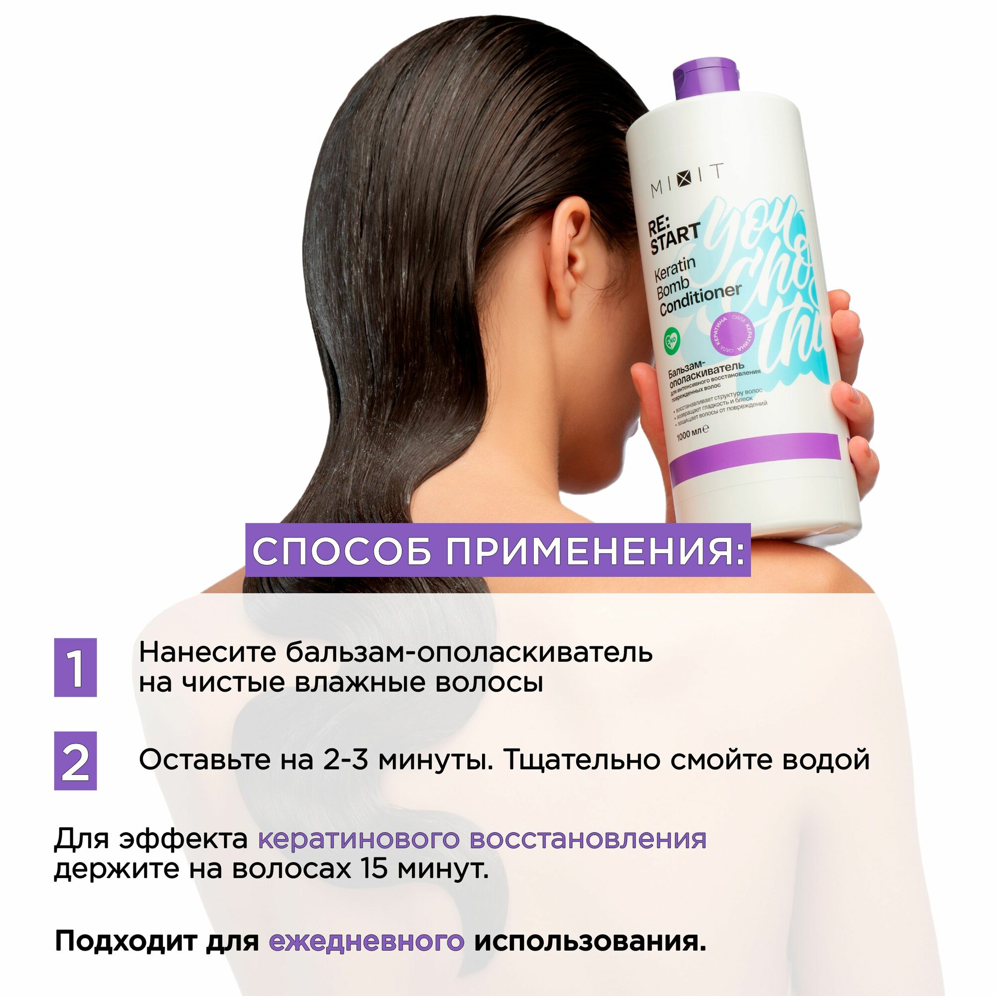 Купить MIXIT Восстанавливающий бальзам ополаскиватель для секущихся кончиков волос с кератином RE:START, 1000 мл