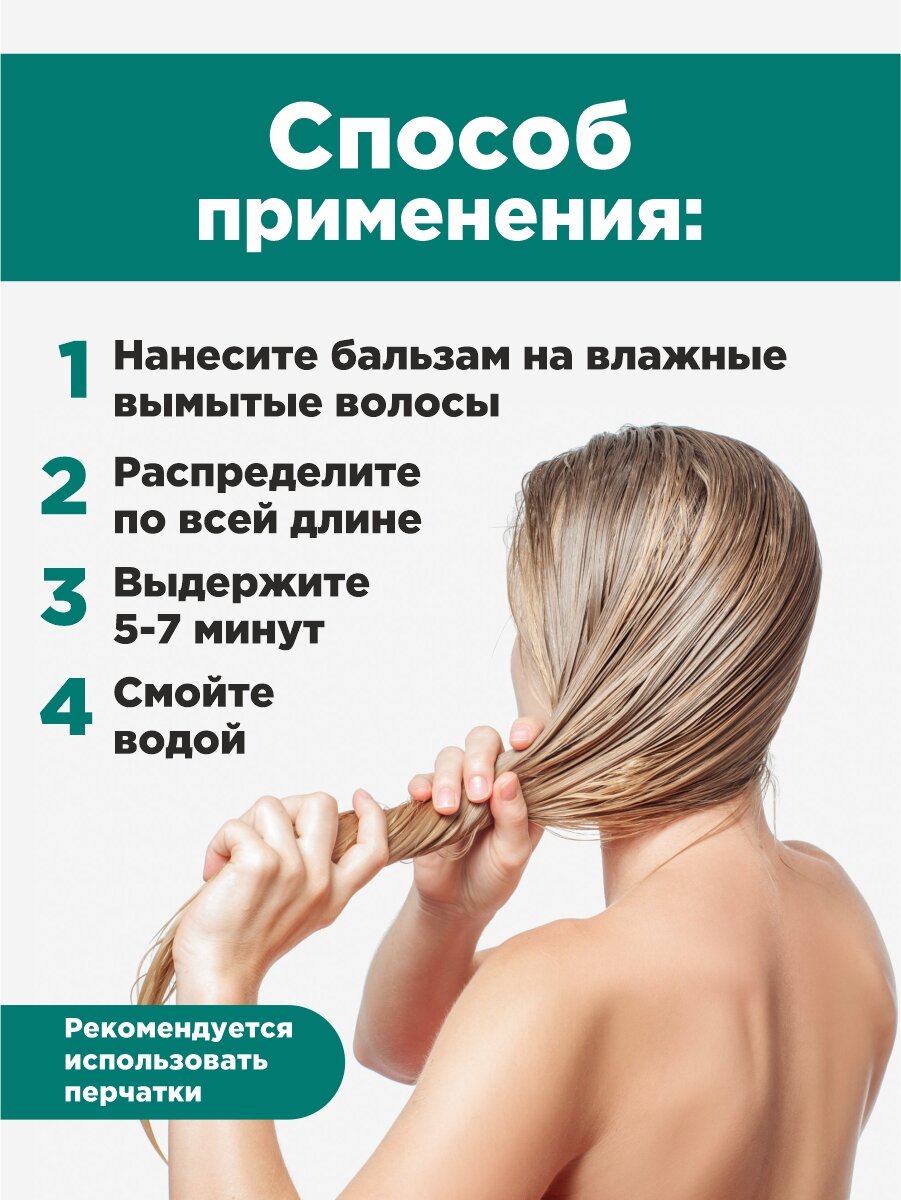 | Способ применения | нанесите бальзам на влажные вымытые волосы, распределите по всей длине, выдержите 5-7 минут, смойте водой. Рекомендуется использовать перчатки |