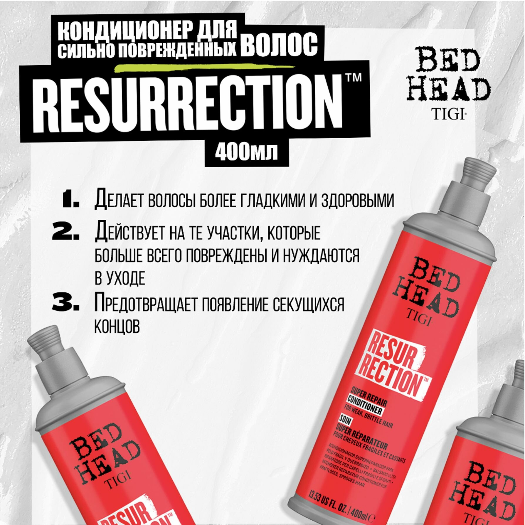 Ниже Вы можете прочитать отзывы на Кондиционер для сильно поврежденных волос RESURRECTION SUPER REPAIR 400 мл, ознакомится с подробными характеристиками, посмотреть интересные обзоры и фотографии на Кондиционер для сильно поврежденных волос RESURRECTION SUPER REPAIR 400 мл.
