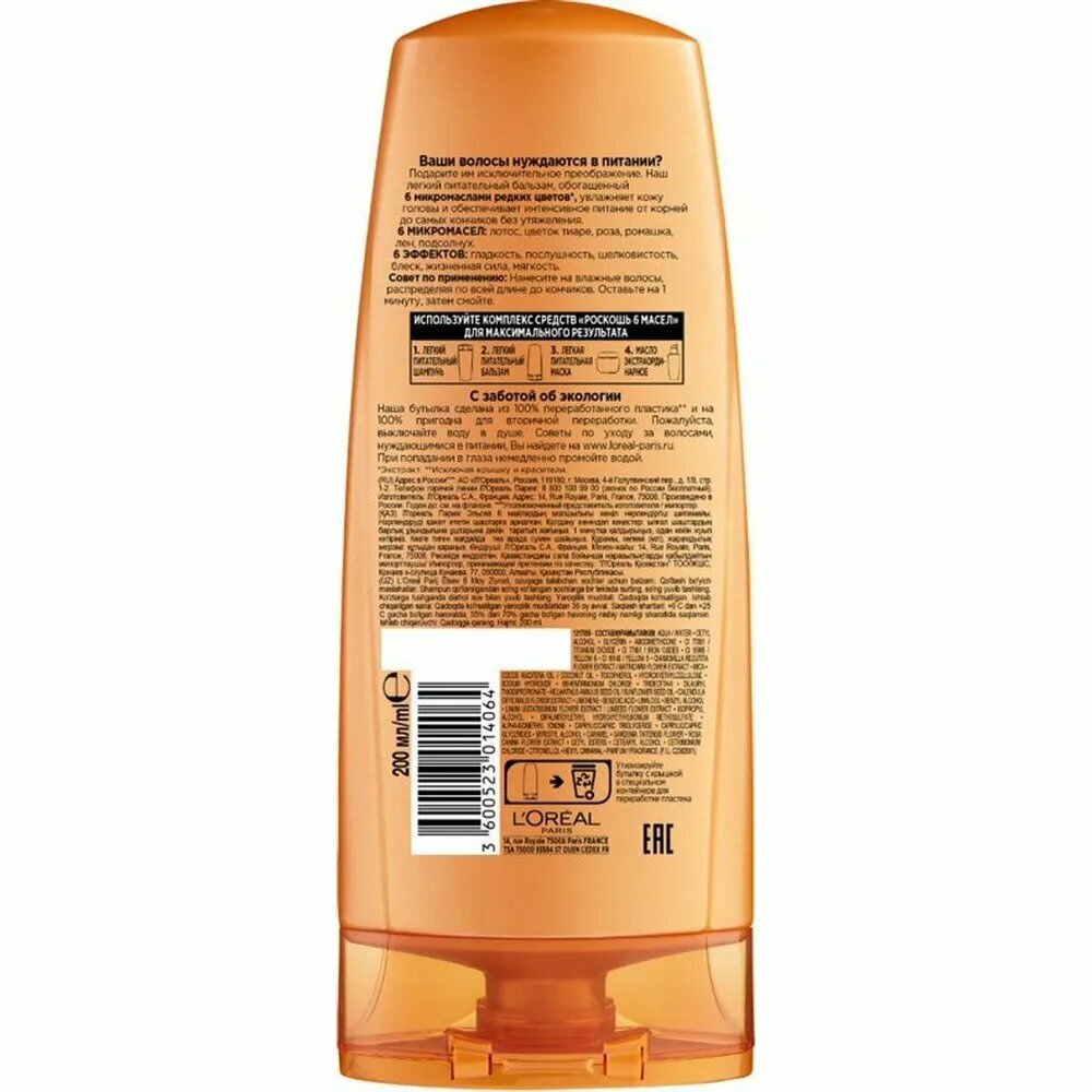 Бальзам LOREAL PARIS Легкий питательный "Роскошь 6 масел", 200 мл интересное: