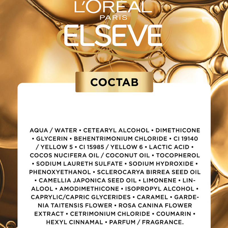 | Состав | aqua/water, cetyl alcohol, glycerin, amodimethicone, ci 77891/titanium dioxide, ci 77491/iron oxides, ci 15985/yellow 6, ci 19140/yellow 5, chamomilla recutita extract/matricaria flower extract, mica, cocos nucifera oil/coconut oil, hydroxyethylcellulose, stearyl alcohol, behentrimonium chloride, trideceth-6, chlorhexidine digluconate, helianthus annuus seed oil/sunflower seed oil, nelumbium speciosum extract/nelumbium speciosum flower, extract, linum usitatissimum flower extract, isopropyl alcohol, dipalmitoylethyl hydroxyethylmonium methosulfate, caprylic/capric triglyceride, myristyl alcohol, caramel, gardenia tahitensis flower extract, rosa canina flower extract, bisabolol, cetyl esters, cetearyl alcohol, cetrimonium chloride, bht, citric acid, glycine soja oil/soybean oil, parfum/fragrance |